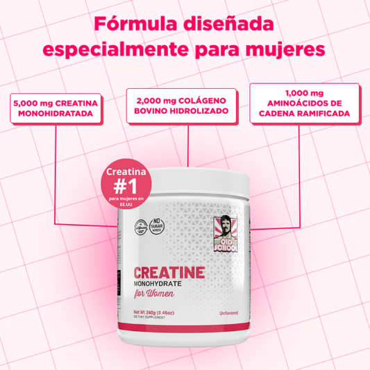 Creatina Monohidratada Premium para Mujeres con Colágeno y BCAA