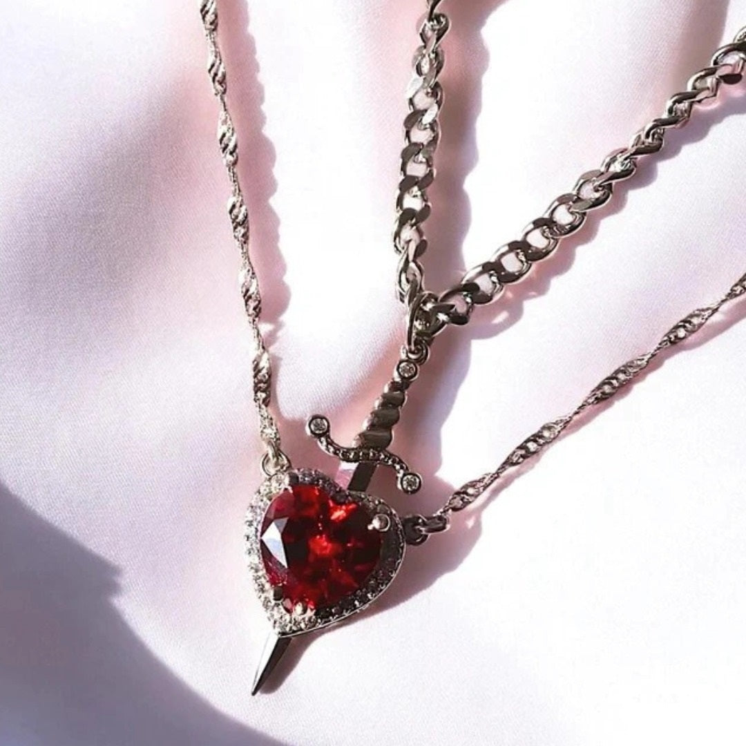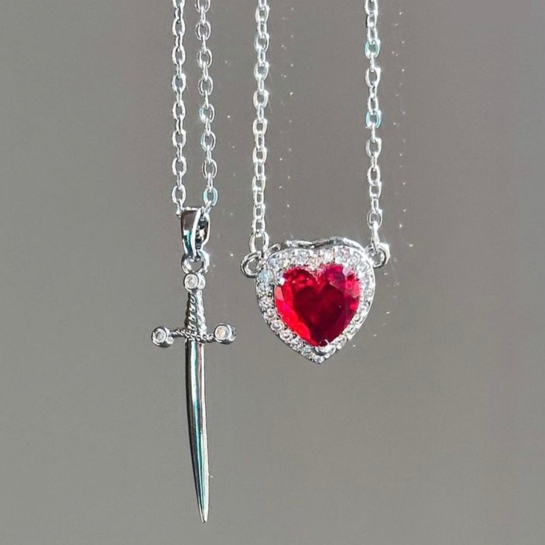 🌟 Incluye: 2 Collares 1x Corazón - 1x Espada 💖⚔️